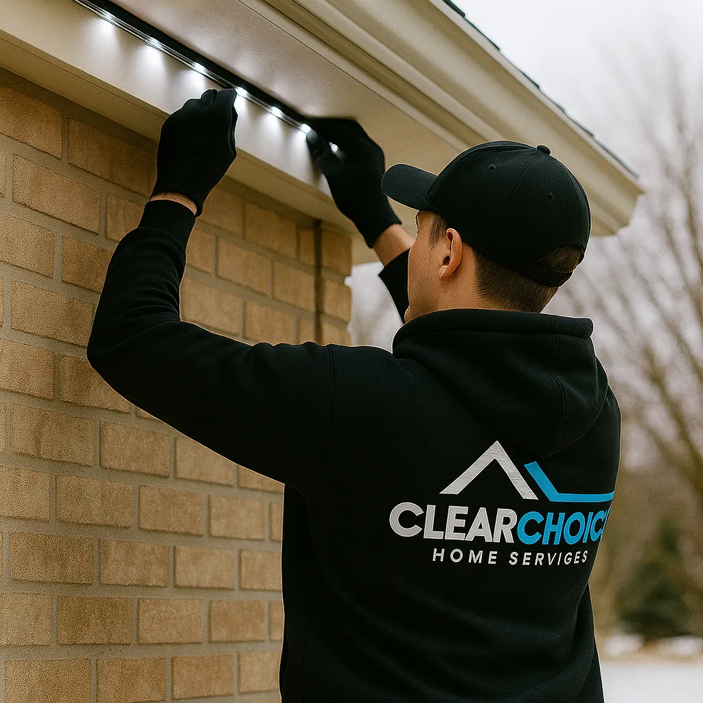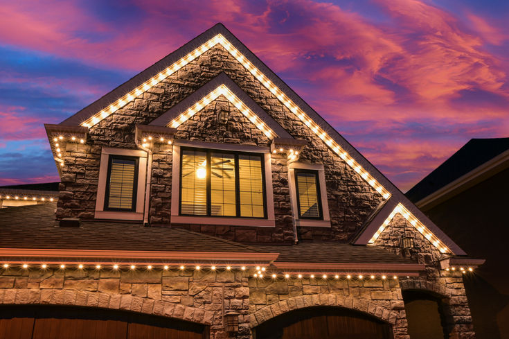 Our team installs your permanent lighting system cleanly and securely, using low-profile, commercial-grade LEDs that blend seamlessly into your home — no wires or clips showing.